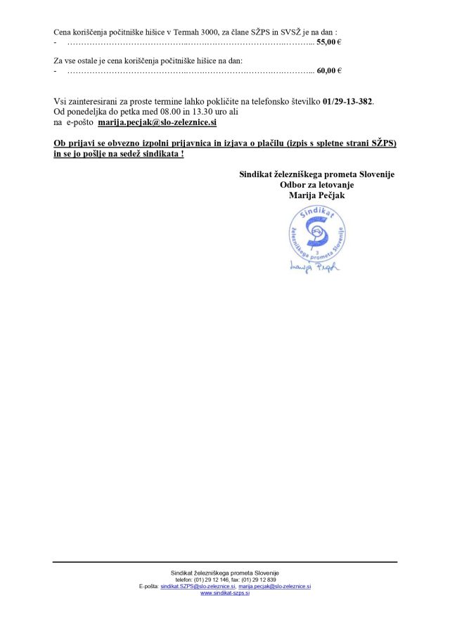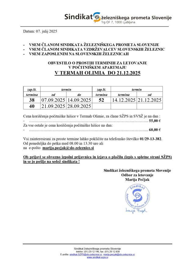 Odbor za letovanje Sindikata železniškega prometa Slovenije objavlja proste termine v Termah 3000 in Termah Olimia na dan 7. julij 2025 -vabljeni k prijavi.