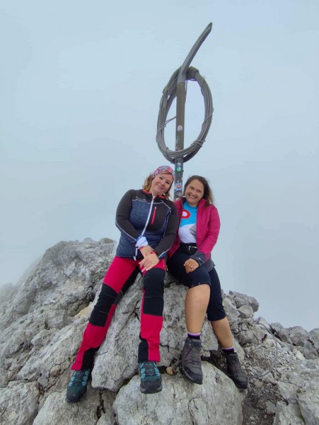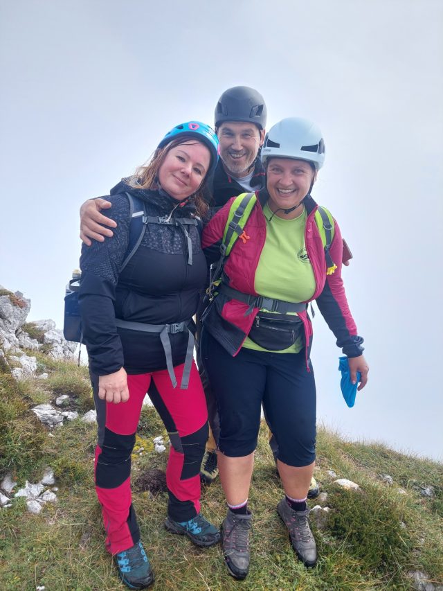 Na vrhu se nas je nekaj spominsko fotografiralo ob velikem klinu, ko sta obe skupini znova prišli skupaj, pa smo, kakopak, naredili skupinsko.