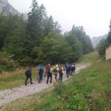 Ker je med našim obedovanjem začelo pošteno deževati, pa se nato malce umirilo, a med našim zapuščanjem toplega in suhega zavetja Planinskega doma na Zelenici znova začelo rositi, nas je Dolfi popeljal mimo začetnega dela proti ferati na Vrtačo do t.i. lovske poti v dolino.