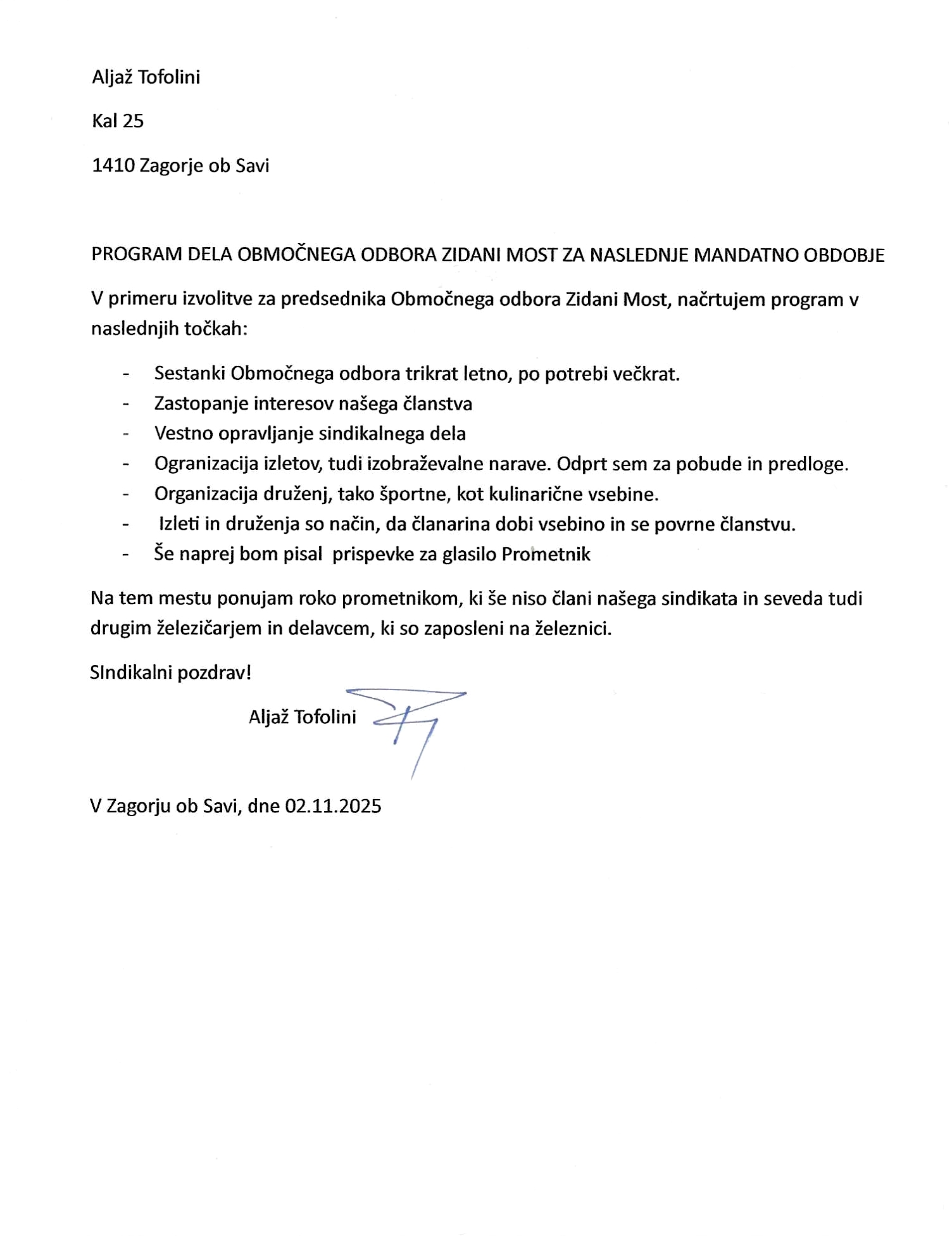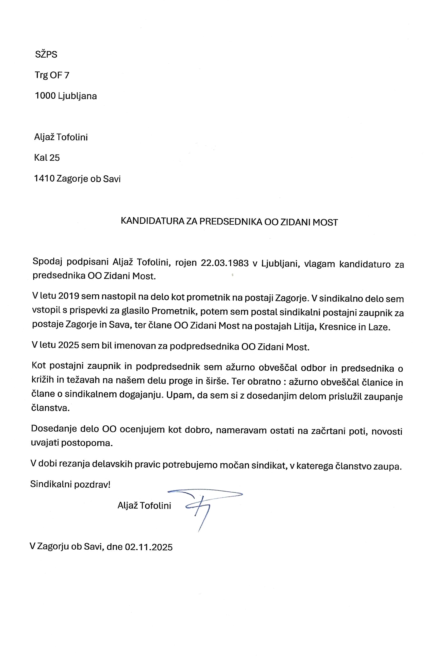 Kandidatura za predsednika OO Z. Most – Aljaž Tofolini