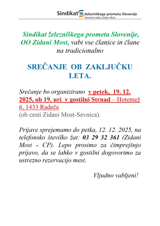 Spoštovani člani in cenjene članice SŽPS OO Zidani Most,